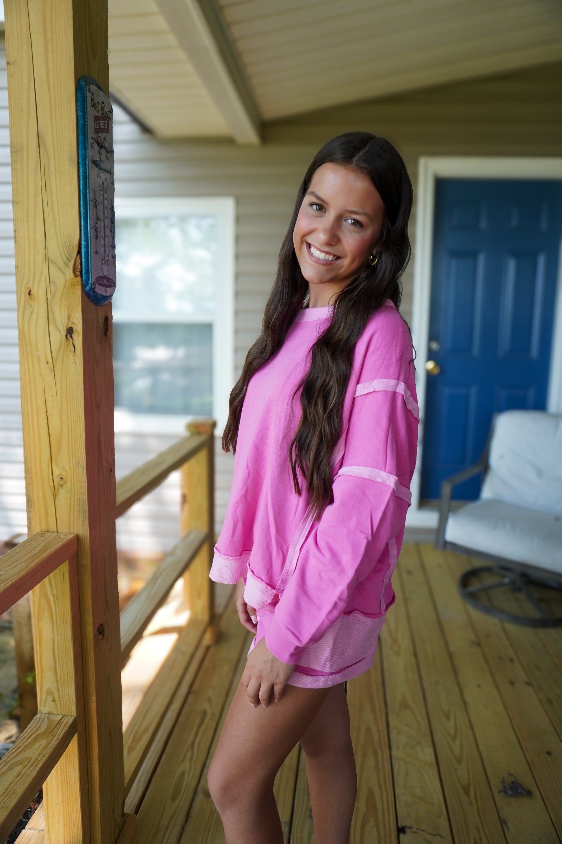 This bold pink lounge set is serving cozy and cute. With contrast trim details and a relaxed fit, the Pop of Pink Set is made for slow mornings, evening wind-downs, or running errands in style. Soft, stretchy, and unapologetically fun—just like you.