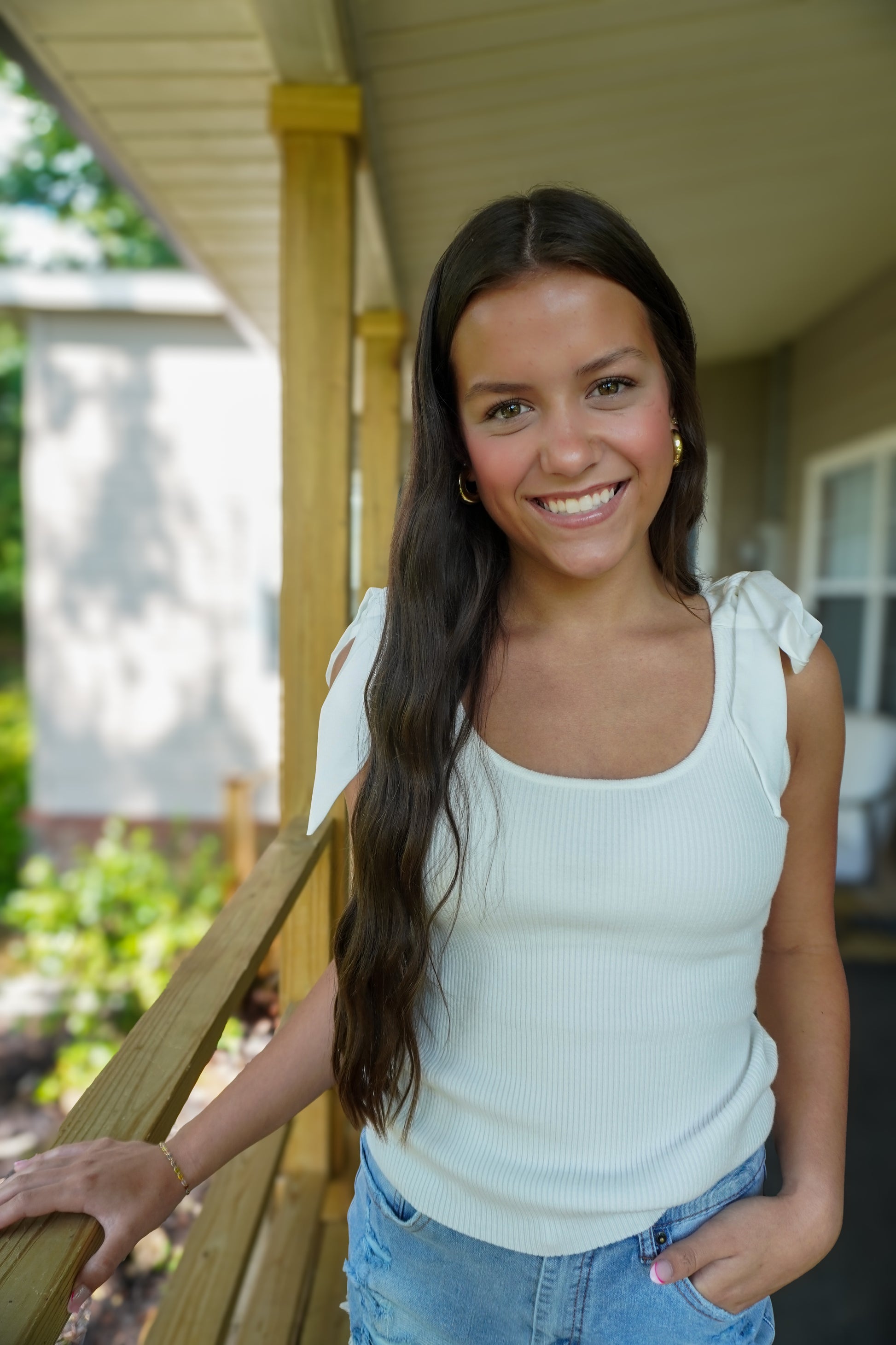 This top is just… darling. The little satin tie shoulders?! Come on. It’s stretchy, soft, and the knit feels like a dream. We love it paired with the Garden Grace Skirt, but it’s also perfect with high-waisted jeans or flowy pants. You can dress it up or down — total closet staple.